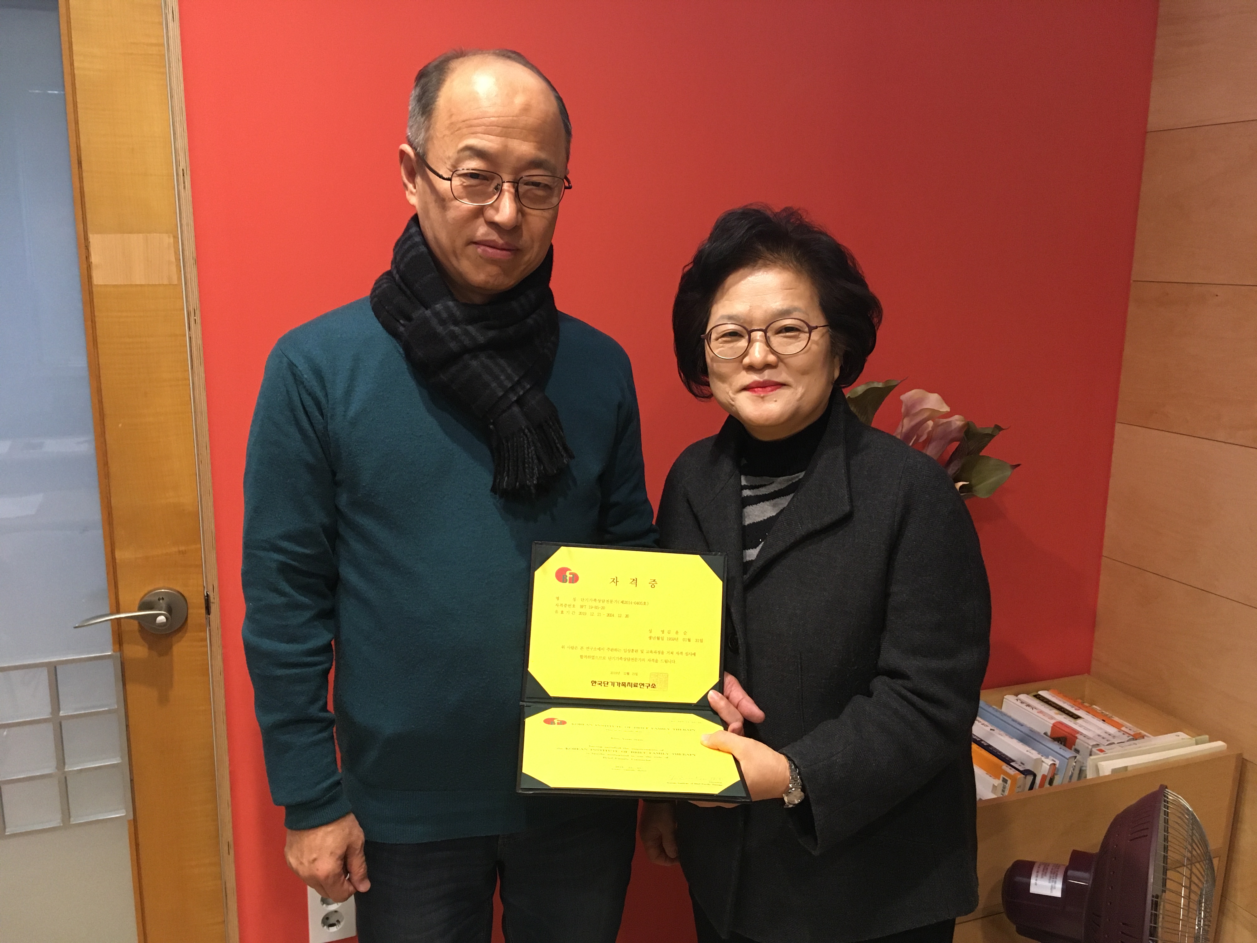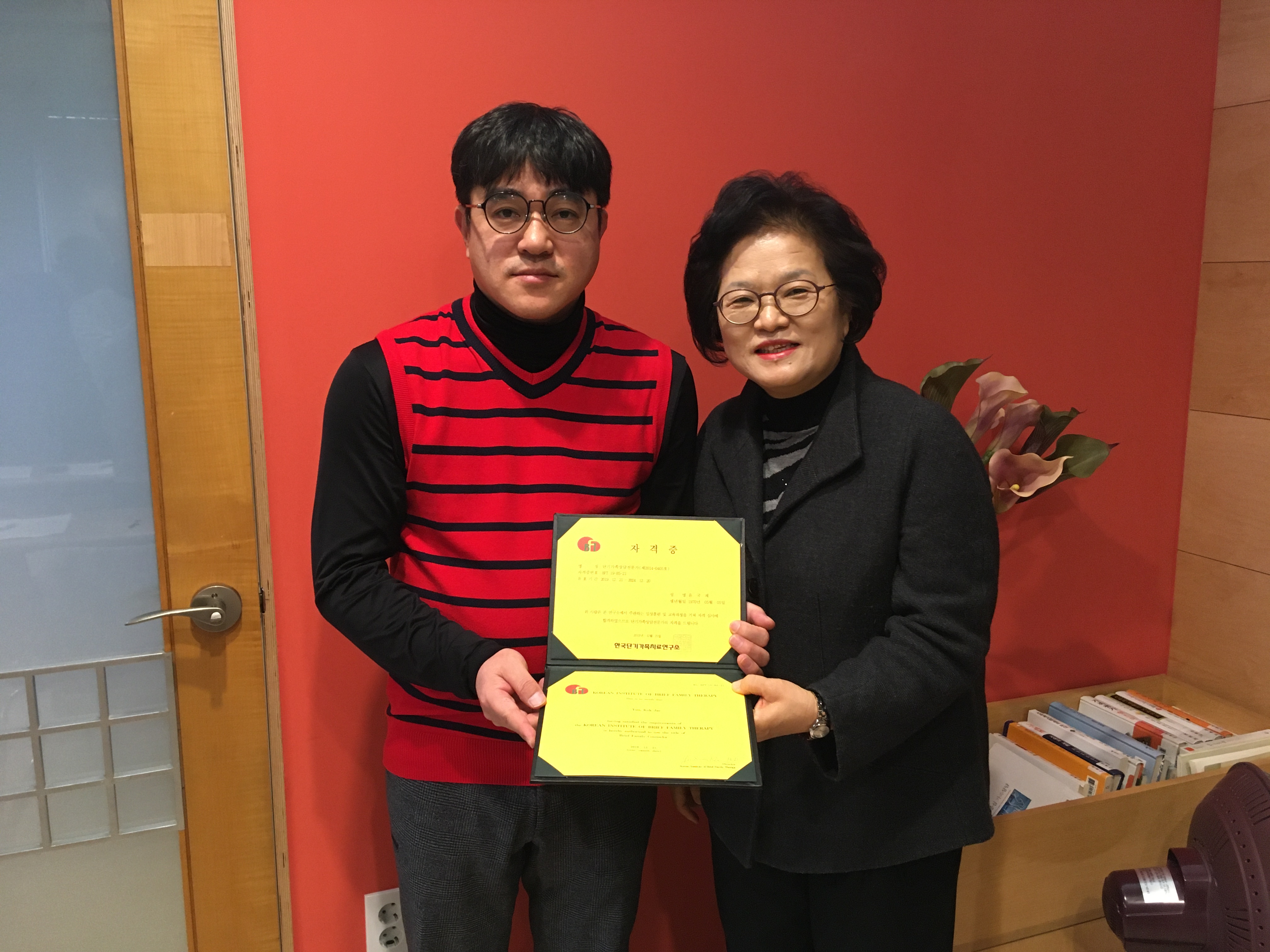 단기가족상담전문가 자격증을 받으셨습니다.